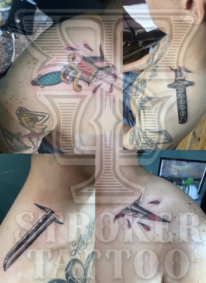 Dagger/刀/カバーアップ龍inprogress tattoo