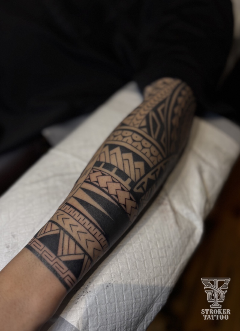 トライバルタトゥーのスリーブデザイン。7分→9分に延長。