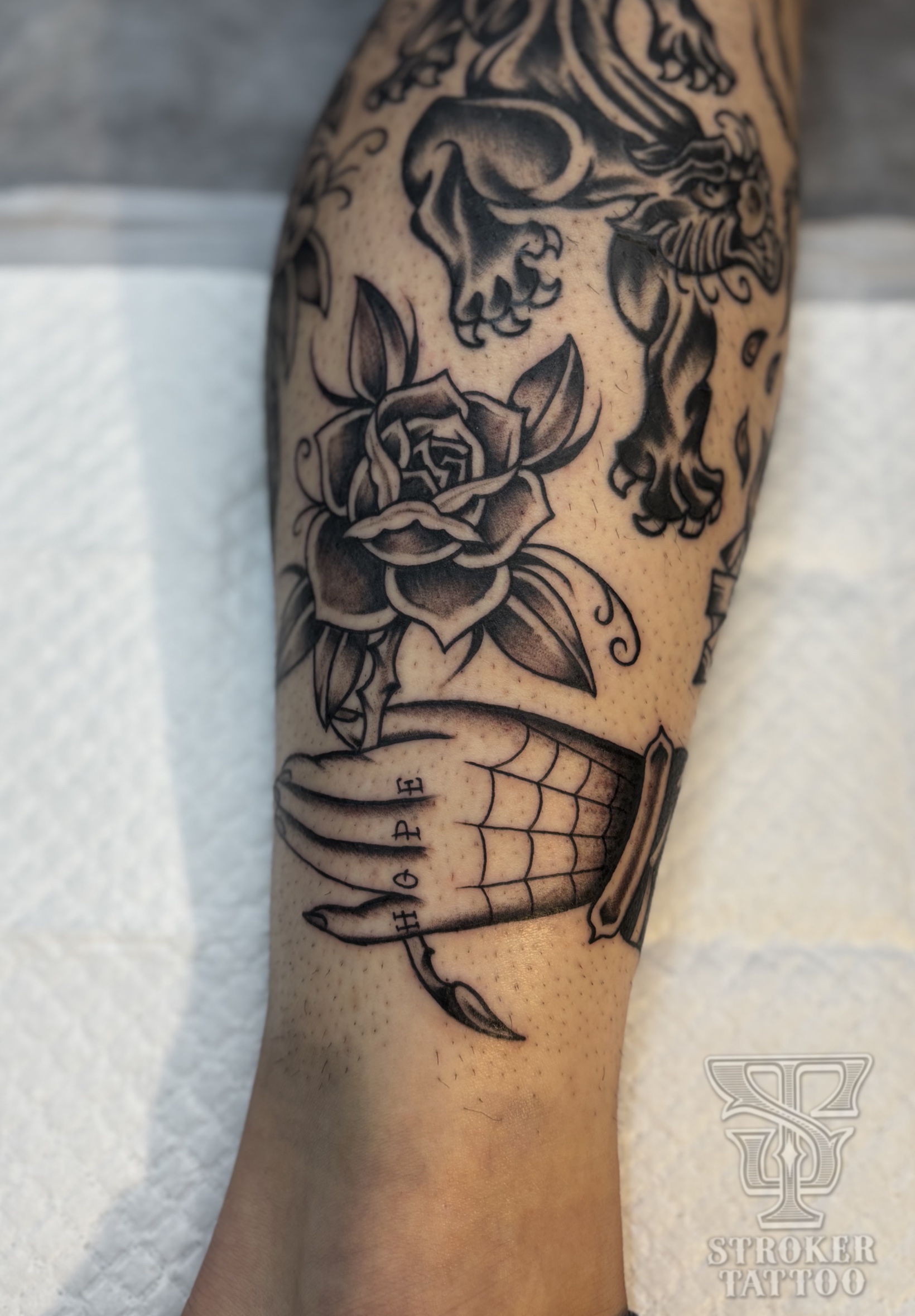 手の部分の二重彫りも急遽決まりましたが、黒で統一されたスタイリッシュなタトゥーになりました!