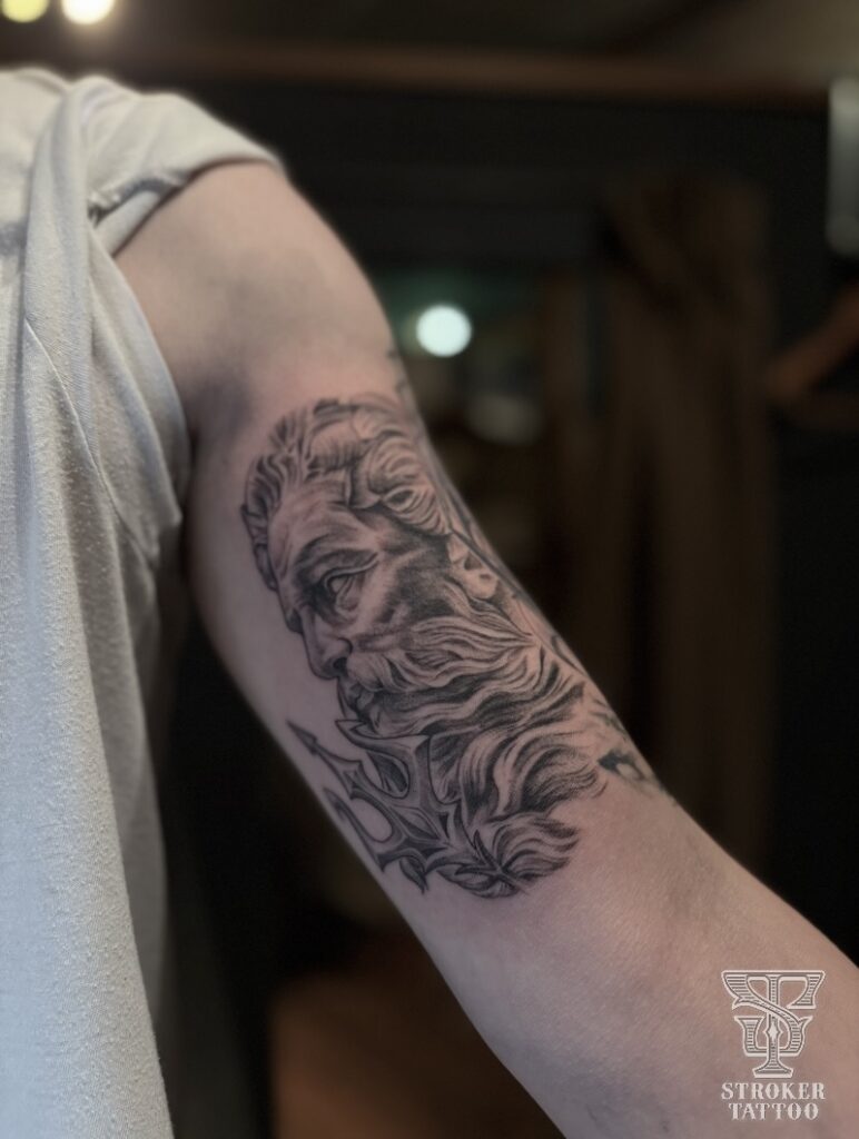 2つ目は、二の腕の内側に彫ったポセイドン。