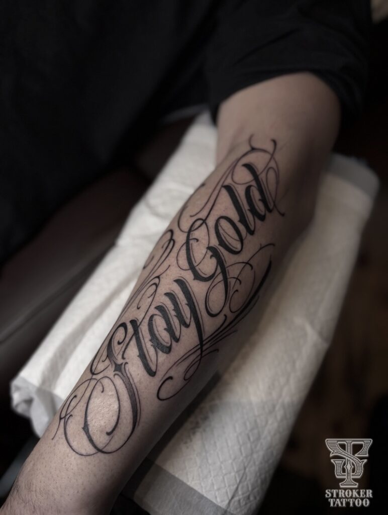 1つ目は、前腕に入れた「Stay Gold」のスクリプトタトゥーです。