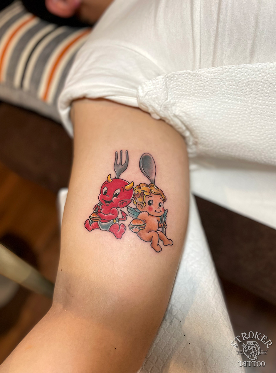望遠鏡、レッドデビル、バッファローのカラータトゥー