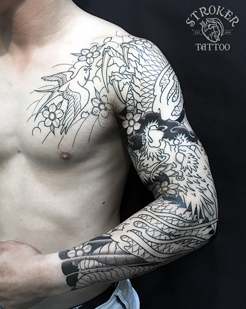 どう進めてゆくのか?ひかえカイナ袖九分龍、和彫り刺青完成までの10画像
